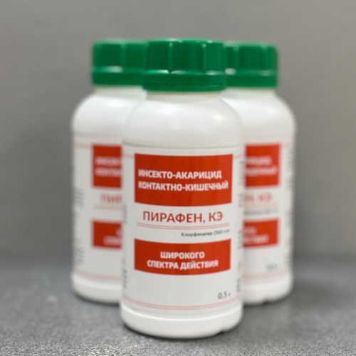 Пирафен, КЭ - новый уникальный препарат, имеющий быстрое действие и длительный период защиты (15-20 дней), препарат не оказывает фитотоксичного действия на растения, имеет низкий класс опасности, не оставляет пятен на растениях, подавляет вредителей на обеих сторонах листа.