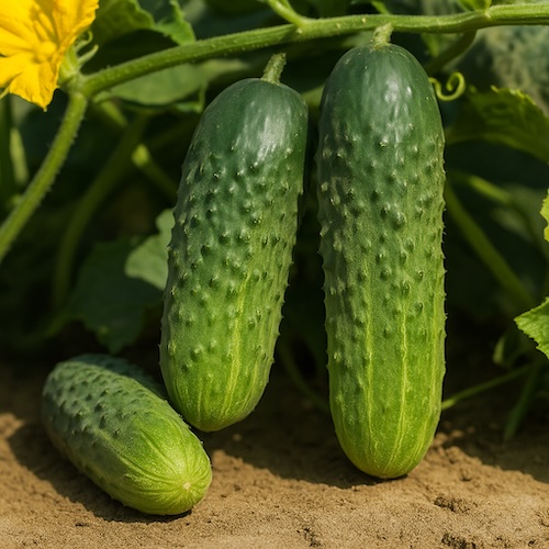 Плоды длиной 8-12 см. Отличные вкусовые качества, без горечи, кожица нежная, мякоть сочная, ароматная. Высокие засолочные качества - идеален для переработки.